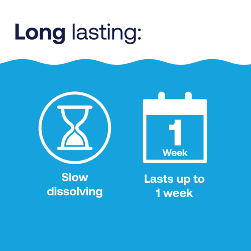 Sun protected for longer chlorine life, HTH™ Chlor Tabs dissolve slowly and last up to one week.
