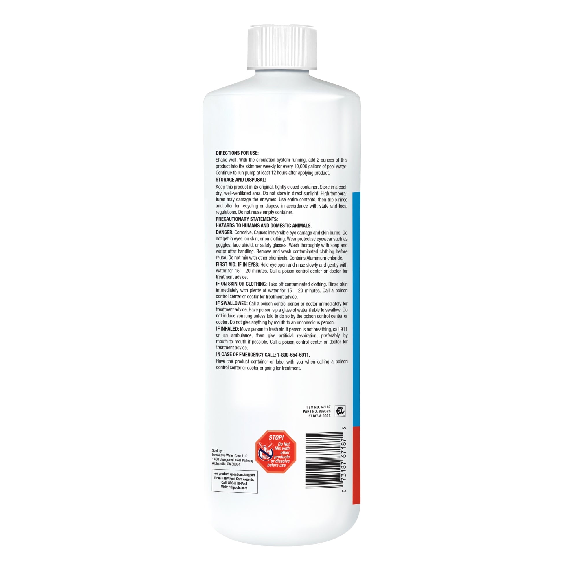 Let this concentrated formula remove phosphates from pool water. Powerful enzymes will prevent waterline build up. Additional clarifiers will ensure crystal clear water.