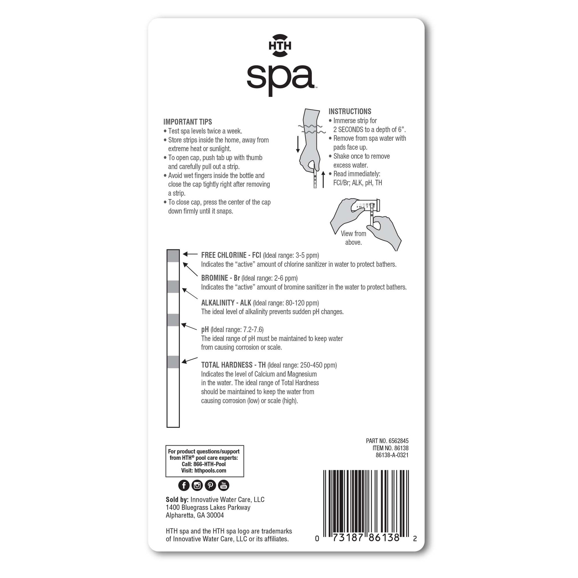 For best results, use HTH spa™ Test Strips twice a week to test and balance your spa water.