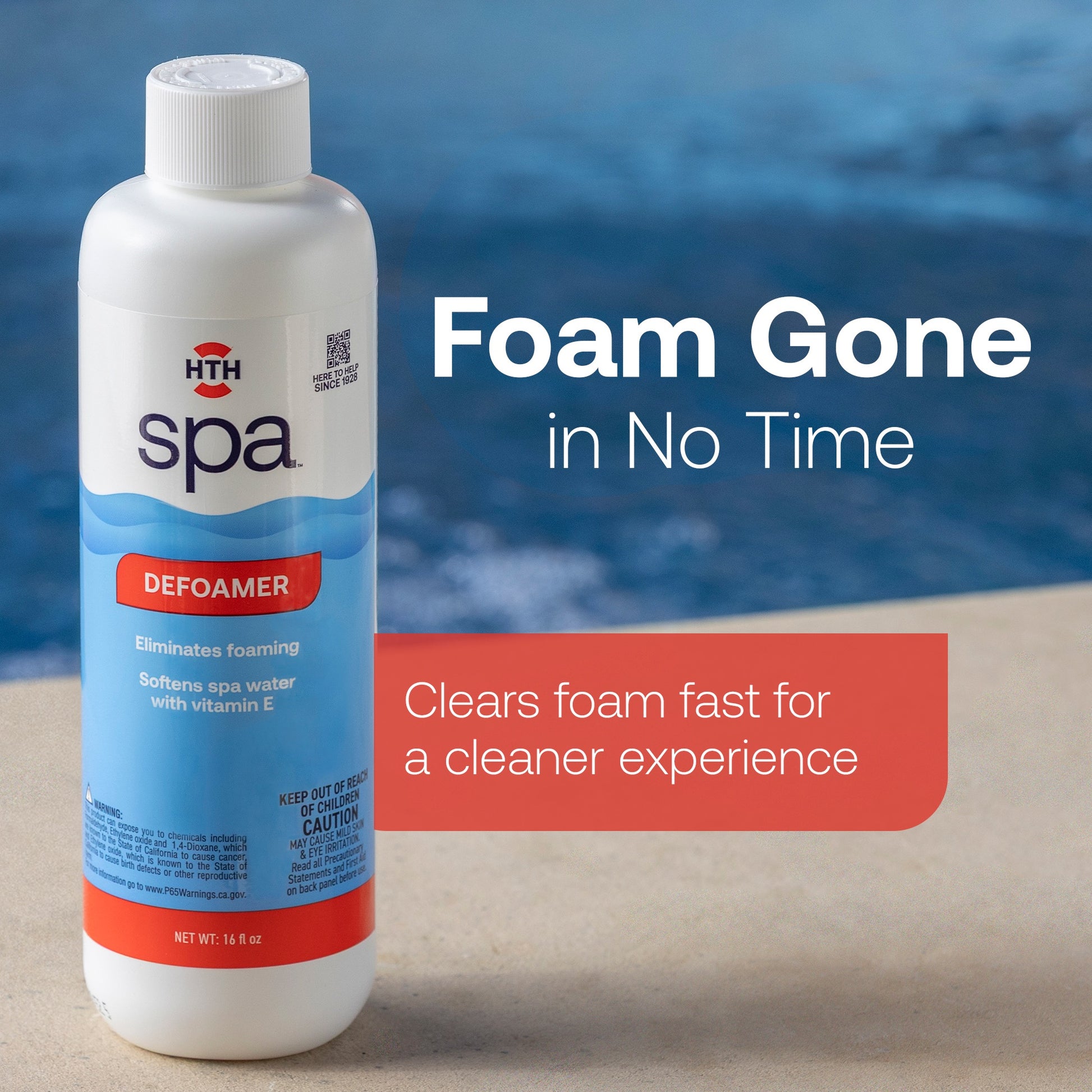 HTH spa™ Defoamer helps you relax into clear, calm water by quickly eliminating unwanted foam from your hot tub or spa.